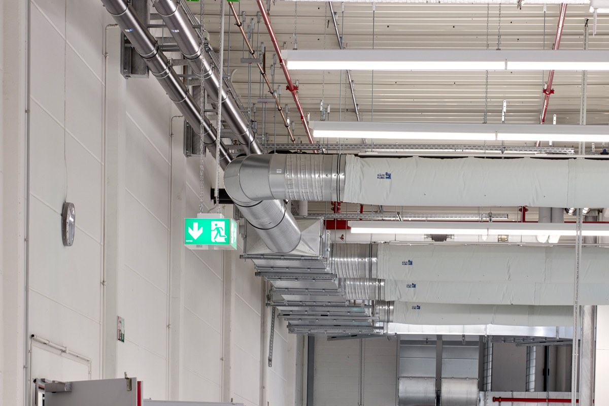Aufgrund der Größe der Gesamtanlage, sowie der unterschiedlichen Anforderungen an die Lüftung und Klimatisierung der einzelnen Bereiche, ergaben sich spezielle Herausforderungen an die Umsetzung. So kamen z.B. 150 Deckenstrahlplatten als „stille Kühler“ zum Einsatz, bei denen eine Taupunktunterschreitung auszuschließen ist. Die zugfreie Luftverteilung in den Produktionshallen wurde mittels Textilschläuchen sichergestellt und die Funktionsräume mit Register für Heiz- und Kühlbetrieb ausgestattet.Die Lüftungstechnik sowie eine 650 kW Kaltwasseranlage mit Wärmepumpenfunktion zur Klimatisierung der Funktions- und Messräume wurden auf dem Dach des Gebäudes aufgestellt. Für eine ausreichende Kapazität sorgt ein 5.000 Liter Kaltwasser-Pufferspeicher. Korrosions- und wartungsfreie vorgedämmte Polyethylen-Kunststoffrohre realisieren eine weitestgehend verlustfreie hydraulische Versorgung. Die Forderung nach allerhöchster Regelgenauigkeit konnte mit einem drucklosen Verteiler für die einzelnen Abteilungen und mittels Dreiwege-Mischventilen erfüllt werden.