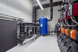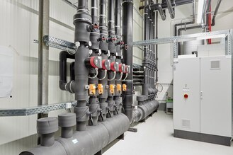 Eine Systemtrennung in Abschnitte, die mit Glykol gefüllt werden mussten und Bereiche, die mit Wasser betrieben werden konnten, erfolgte aufgrund der Aufstellung von Anlagenteilen im Außenbereich.