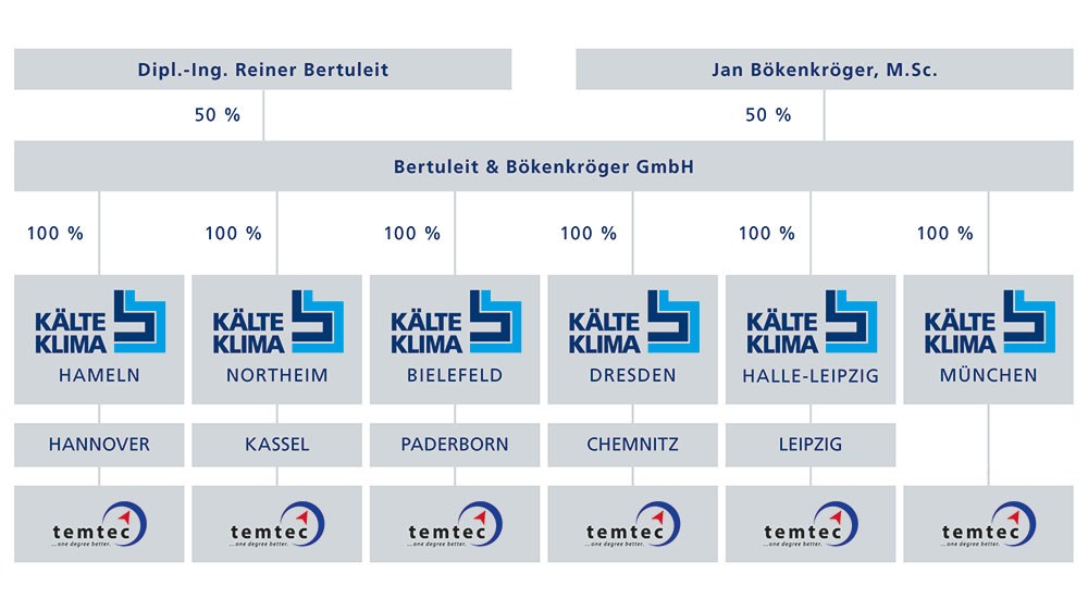 Nachdem Kurt Bökenkröger und Reiner Bertuleit die Firmen von der Gründergeneration Mattern, Bertuleit & Müller, Dopheide übernommen und zur KÄLTE-KLIMA Gruppe geformt haben, übernimmt nun die dritte Generation das Ruder: 2021 hat Kurt Bökenkröger nach 41 Jahren als Geschäftsführender Gesellschafter der Bertuleit & Bökenkröger GmbH seine Geschäftsanteile an seinen Sohn Jan Bökenkröger übergeben. Reiner Bertuleit und Kurt Bökenkröger, beide Jahrgang 1953, sind Ingenieure für Versorgungstechnik.